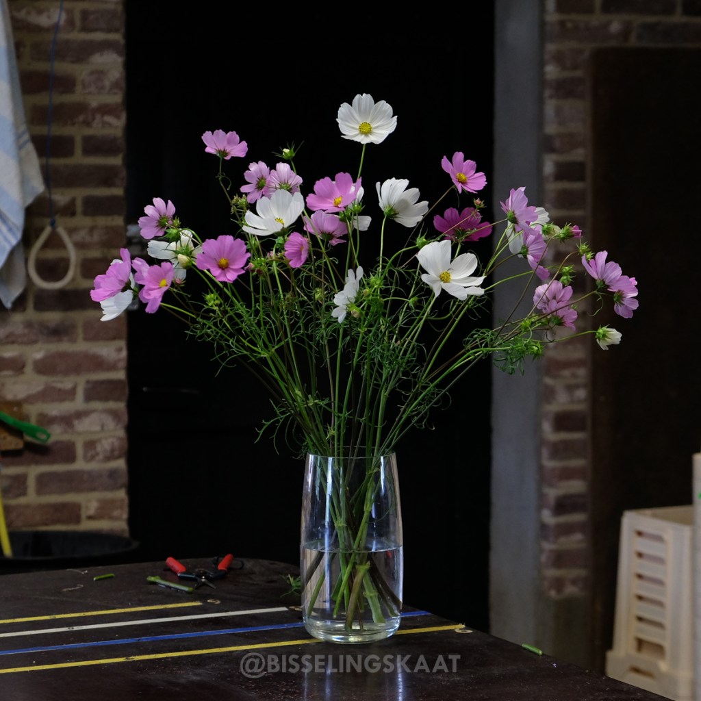 Zo druk met het oogsten van Miscanthus dat er geen tijd is om het weekverslag te maken. Boeketten deze week bevatten Helenium, Verbena, Miscanthus, Sedum, Veronicastrum, Achillea, Kalimeris, Sanguisorba. Cosmos bipinnatus.
