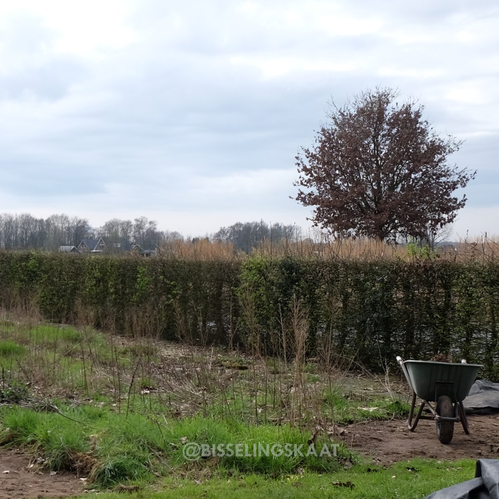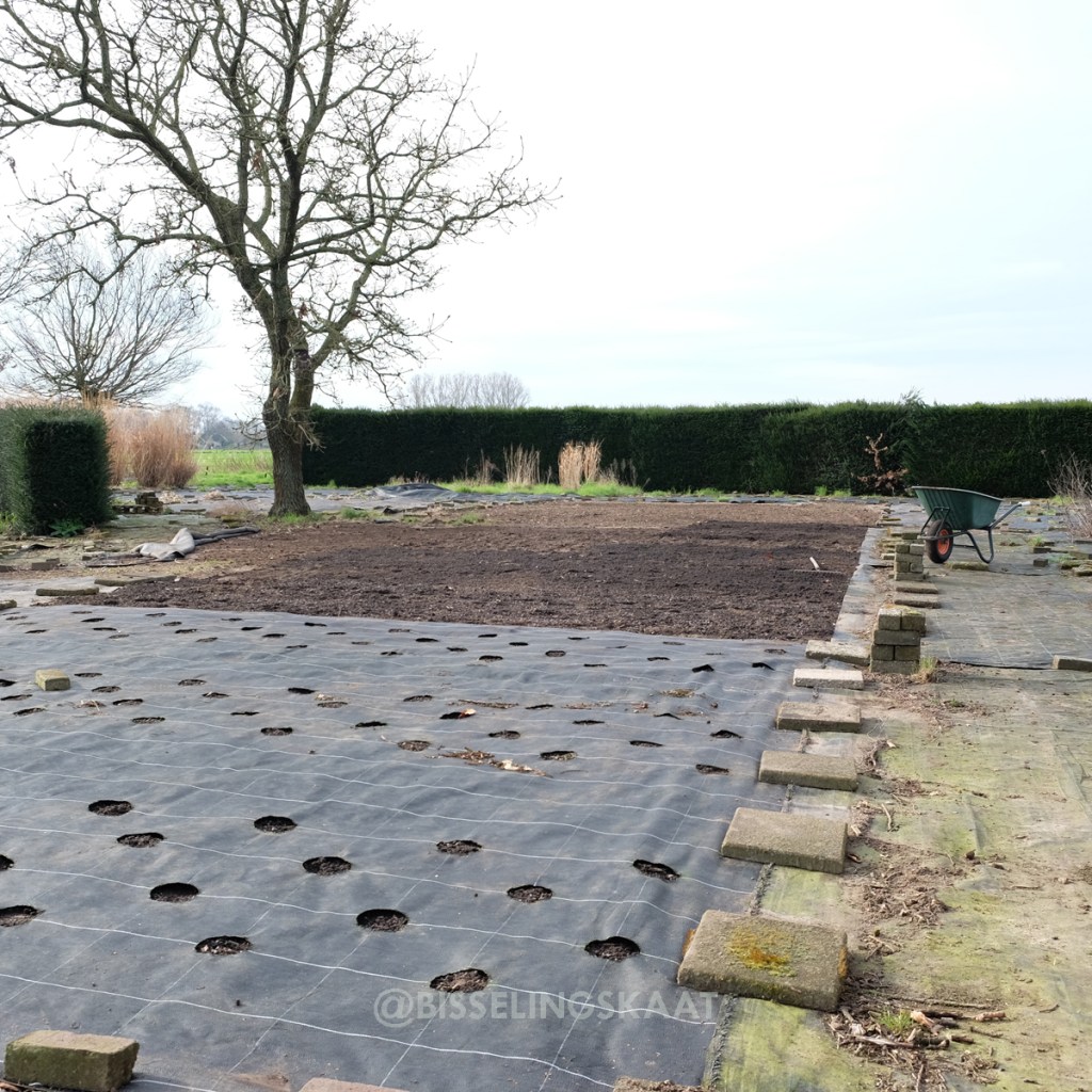 Het onderhoud van de houtstrook tussen kwekerij en de afwateringssloot langs de weg is klaar. De voorbereiding op het oogstseizoen kan beginnen! Allereerst de compostzeef in gebruik genomen bij de composthoop in de houtstrook. Deze composthoop is in 2022 opgebouwd en aangevuld in het voorjaar van 2023. Na voltooiing van de hoop is deze afgedekt met gebruikt gronddoek zodat onkruidgroei niet plaats kan vinden en de compostering sneller gaat. Donkerrode pimpernel (sanguisorba) gerooid, de grond waar ze stonden bemest en er gezeefde compost over verspreid. Gronddoek teruggelegd. Geitenbaard (Aruncus) opgenomen, gesplitst en geplant in de leeg gekomen gaten. Aruncus is een langzame groeier, het zal enige jaren duren voordat er stengels van geoogst kunnen worden. De eigenschappen van Aruncus is het wachten meer dan waard: bijzonder mooi uiterlijk van zowel bloem als blad en een lang vaasleven.